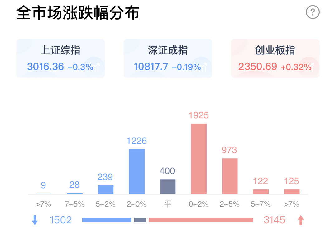 昨天一根阳线以后市场今天就转入分化,几个指数分裂较大,不过全市场超过3000家上涨,还算挺可以的。