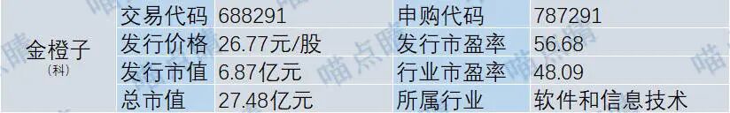 金橙子主营业务为激光加工设备运动控制系统的研发与销售,产品覆盖激光标刻、激光切割等,广泛用于消费电子、新能源、半导体、汽车、医药等领域。公司发行价和估值都可接受,对应破发率也不算高,我正常申购。