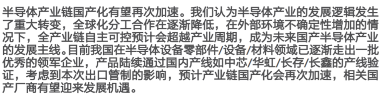 其实从19年的华为开始,到20年的中芯国际,再到今年500亿美元的芯片法案以及对GPU和EDA的限制,直至此次高端芯片设备的封锁。可以看出,围追堵截的速度越来越快,范围也是越来越广。国产替代这条路谁都知道不好走,但却是唯一的路。