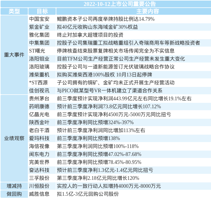 最后,叶哥继续上钟,整理了昨晚披露三季报预报情况,并做了业绩预测的对比清单,大家点个在看支持下,之后消息栏回复【三季报】即可获取。另外关于重要公司的业绩点评,可移步到重要公告栏目围观。