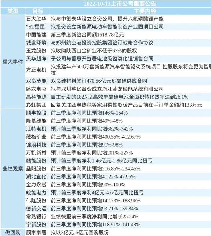 最后,叶哥继续上钟,整理了昨晚披露三季报预报情况,并做了业绩预测的对比清单,大家点个在看支持下,之后消息栏回复【三季报】即可获取。另外关于重要公司的业绩点评,可移步到重要公告栏目围观。
