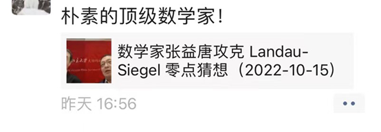 数学界的东西咱也不懂,百度了一下,Landau-Siegel猜想又叫做零点猜想,是本世纪数论难题之一。看到国内数学界的相关评论说,如果张益唐证明了零点猜想正确,那就意味着黎曼猜想被证伪,困扰了数学界100多年来的难题也就有了最终答案。