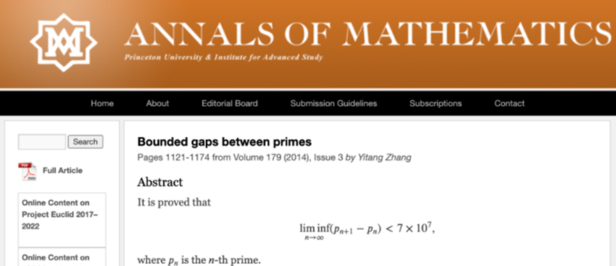 大佬的前半生其实比较坎坷,不过一直没有放弃追求,直到2013年,他在数学期刊上发表《质数间的有界间隔》论文,将孪生素数猜想往前推进了一大步,终于在学界取得声望。