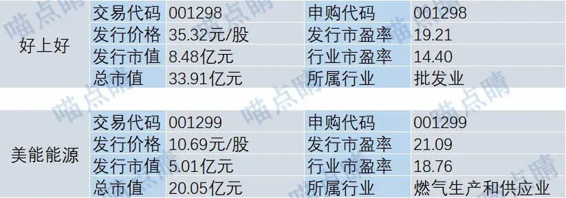 美能能源是专注于清洁能源供应领域的专业化城市燃气综合运营服务商,主要从事城镇燃气的输配与运营业务,包括天然气终端销售和服务以及天然气用户设施设备安装业务。这两个发行价和估值都不高,对应破发率较低,我正常申购。