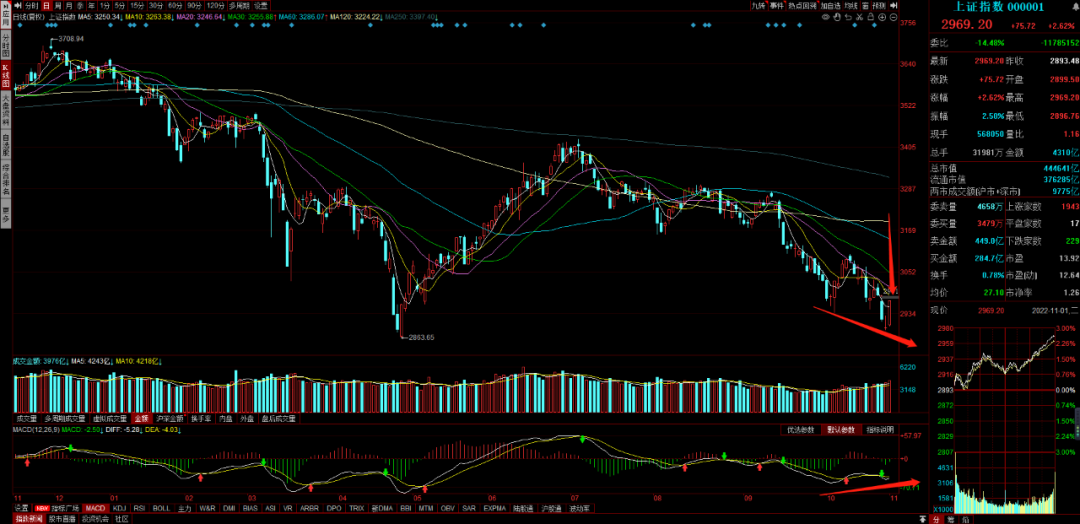今天市场非常强势,各大指数都收大阳线,特别是前面跌得多的上证50今天放量上涨了4.4%,底部形态一下就出来了。