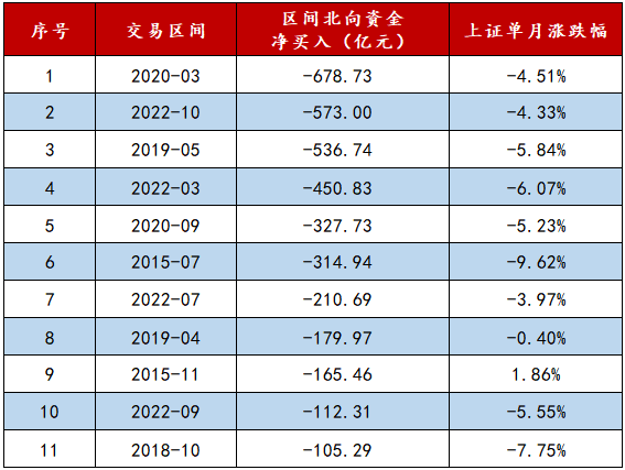 但至于这次为啥卖出如此体量,原因错综复杂,就不多聊了。历史上外资一共有11个月净卖出超过百亿,其中上证指数仅有一次小幅上涨,多数跌幅都在4%以上,可见外资大举卖出对A股影响有多大。