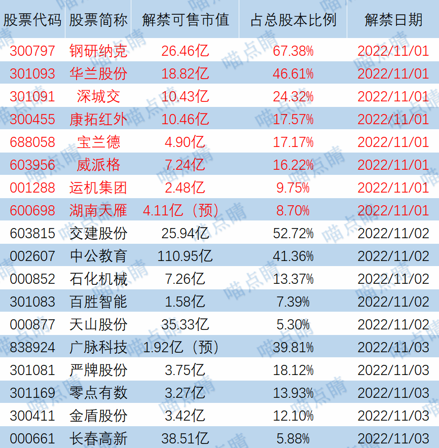 今天钢研纳克、华兰股份等有大额可售解禁。