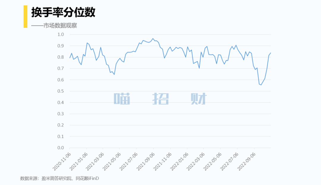 全市场换手率分位数继续上行,到上周五达到了83%的位置。
