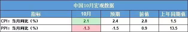 1、10月CPI同比上涨2.1%,主要由食品价格上涨带动,PPI同比下降1.3%,主要是受去年高基数影响。整体看国内物价形势稳定,将继续为国内货币政策的以我为主提供重要支撑。