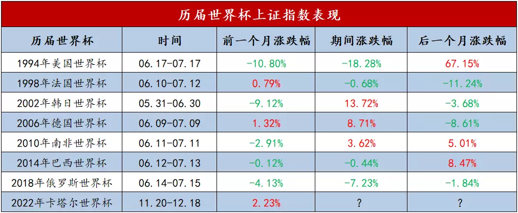 对了,最近我看很多人在关心世界杯魔咒,本着没有调查就没有发言权的原则,我特意去统计了一番,结果如下表: