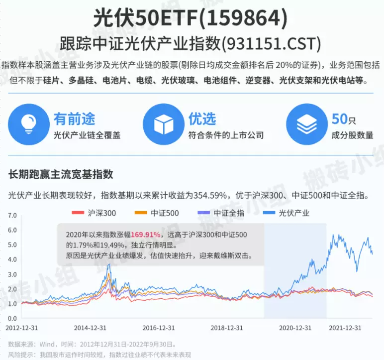 所以就光伏而言,双碳背景下,产业大方向明确,但连行业大佬都确定不了未来的技术方向,筛选个股的难度会比较高,莫不如看看行业指数,光伏产业指数把产业链各个环节都覆盖了,也有对应的ETF。