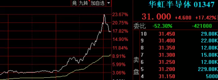 在昨天A股收盘后,港股芯片板块突发暴涨,一扫此前A股成长科技方向的低迷,其中中芯国际涨近10%,华虹半导体一度涨逾20%,走势极其不讲理。