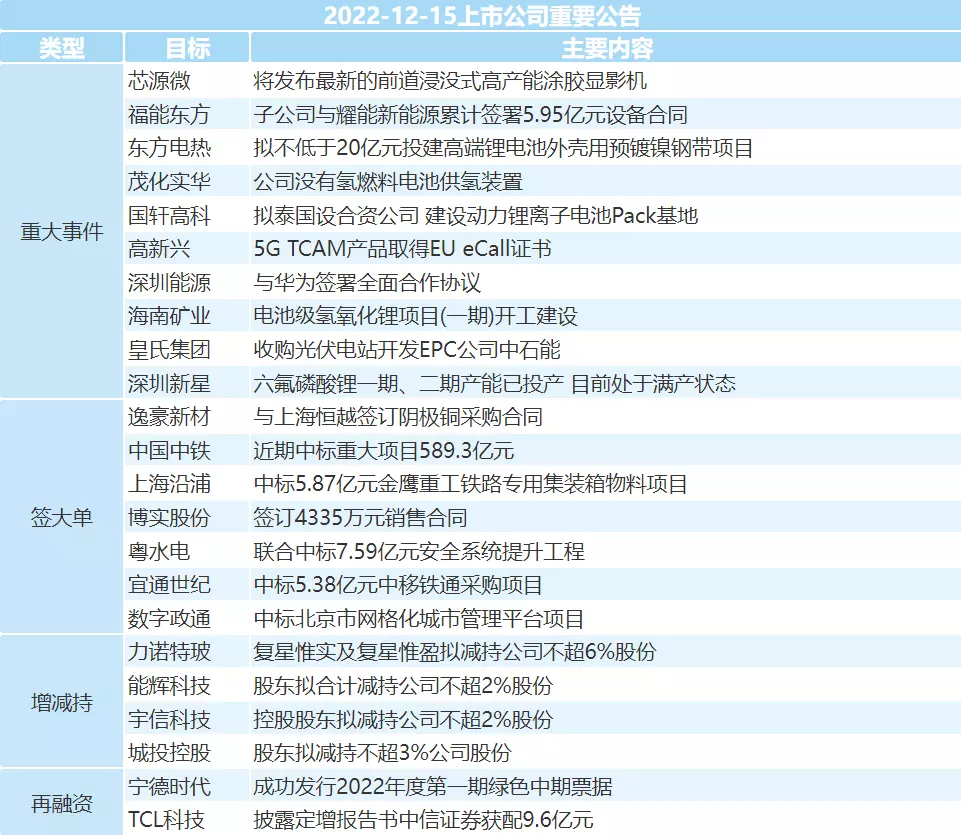 3、传闻中国最新拟投资总规模1430亿美元扶持国内芯片企业,主要用于鼓励中国企业购买本土半导体设备,提供20%采购成本补贴。最快有望在2023年第一季度实施。多家公司回应:未收到相关消息,不确定消息真伪。