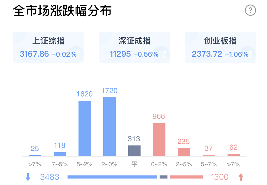 聊回来,市场今天又是震荡下跌的一天,创业板和科创板收了中阴线,成长风格当下受到比较大的压制。中证1000和中证500也是中阴线,只有上证50保持平盘,当前市场是价值蓝筹占优的阶段,但也涨多少,只是扛跌一些。个股层面看就比较难了,1300涨3400跌,亏钱效应还是非常显著的。