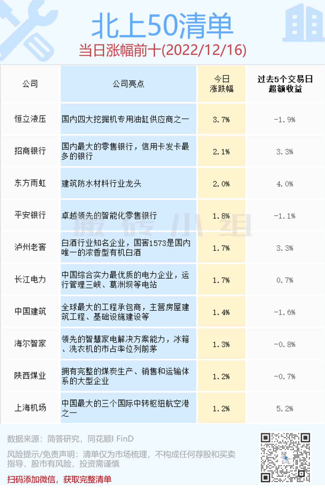 北上50榜单波动不大,风格倒是比较明显,传统价值上榜居多。