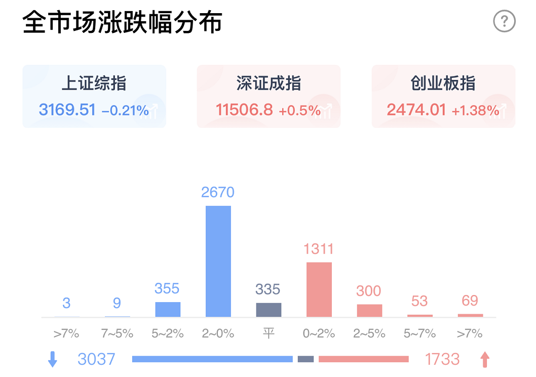 市场今天比较无聊,指数层面波动不大,就创业板涨了一些。个股层面有3000家公司下跌,但跌幅都不算大,整体依然是分化格局。