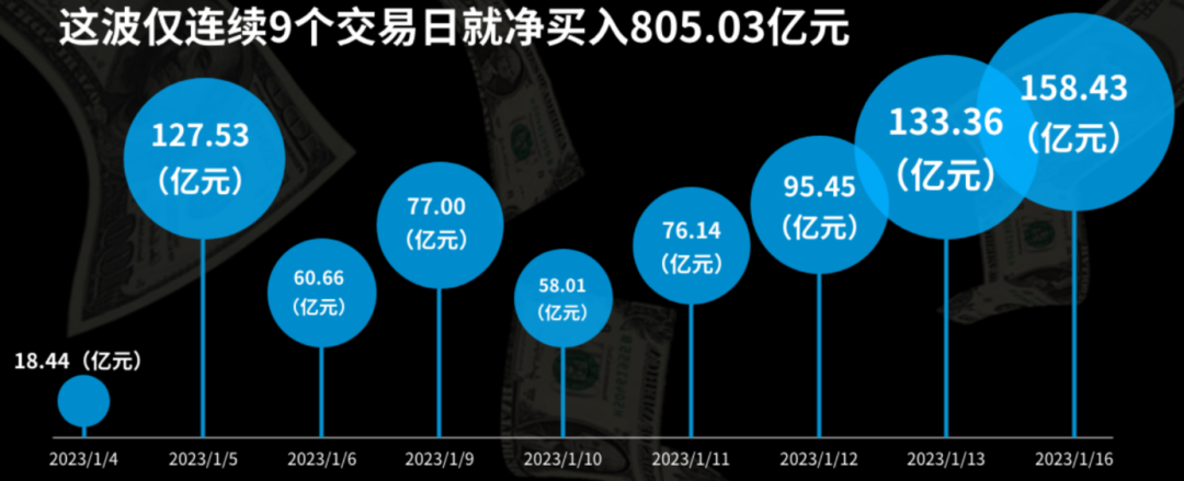 话说这一波的外资真是杀疯了,已经连续9个交易日净买入,累计金额达到了805亿元。要知道,北上历史最猛的一次是2019年底,当时乘着MSCI扩容的东风外资连续净买入30个交易日,累计金额无非也就1136亿元,对比之下,足以见得这一波外资的快、准、狠!