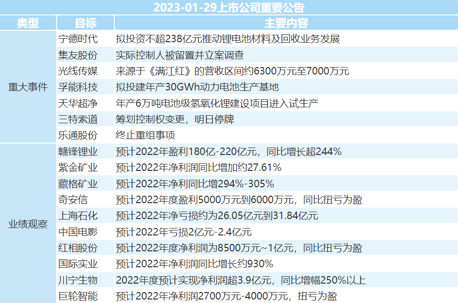 2、赣锋锂业22年预盈180亿至220亿元,同比+244.27%至320.78%。锂盐去年起起伏伏波动比较大,Q4价格走低,锂盐企业日子自然就差了点,但就全年来看中规中矩,没雷也没超预期。