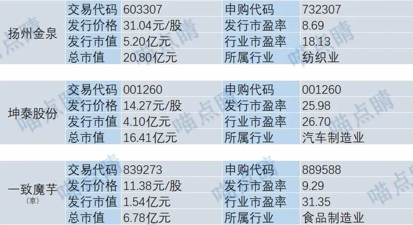 扬州金泉的主营业务为户外用品的研产销,主要产品为帐篷、睡袋、服装、背包等;坤泰股份主营业务是汽车内饰件材料及产品的研产销,主要产品包括汽车地毯和汽车脚垫两大类。各项指标都可接受,对应破发率不高,我正常申购。