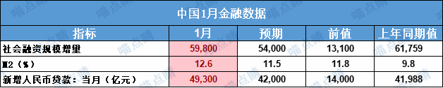 在周五盘后,网传超预期的1月金融数据正式出炉,其中社融增量5.98万亿,落到了预期上沿,新增RMB贷款4.93万亿,创出单月历史新高,考虑今年春节落到了1月份,还少了一周的放贷时间,所以整体看数据上还是非常亮眼的。