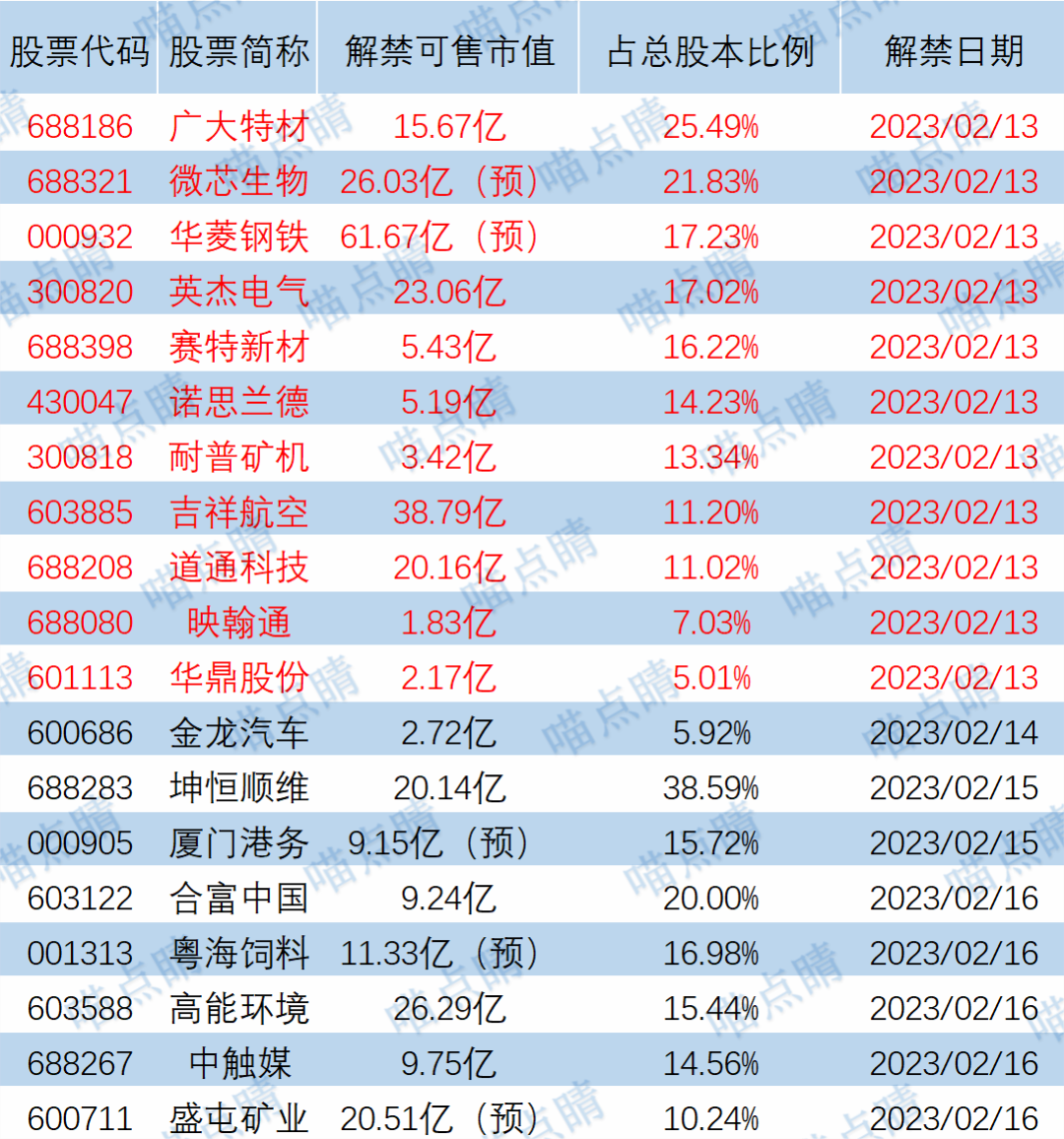 【限售解禁】