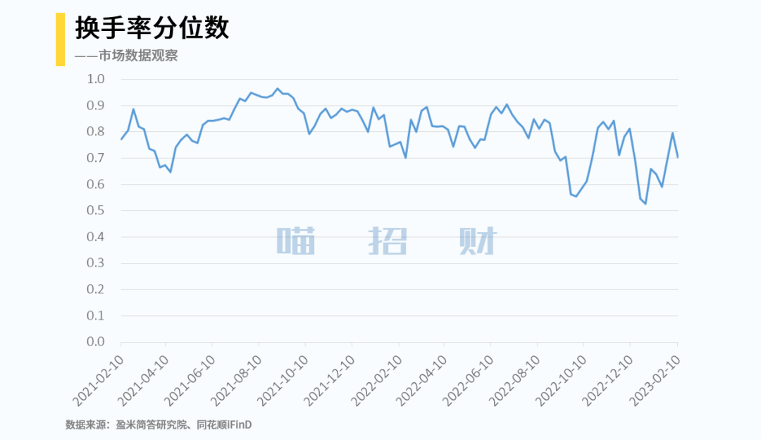 全市场层面,换手率分位数下降至70%,流动性短期出现回落,当下中性预期是保持当前的流动性,市场呈现存量格局。但当下市场环境还不错,不排除有增量资金入场的可能,后续要密切关注市场的成交额,如果有效放量再上万亿,那就值得再乐观一些。