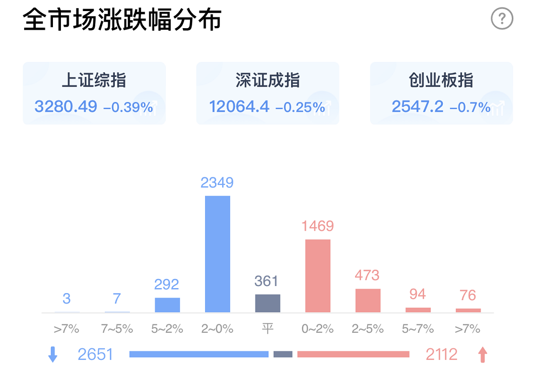 市场今天整体下跌,指数都是小跌的状态。个股层面2700家下跌,总体看亏钱效应开始显现了。
