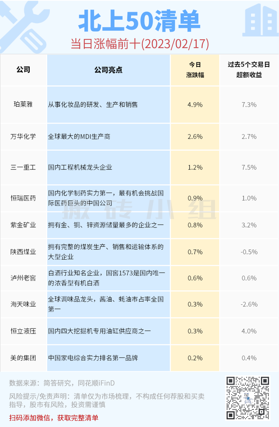 北上50榜单表现较差,只有10只红盘,整体显现亏钱效应。