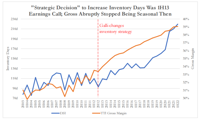 毛利率开始上行的点,跟库存周转天数有比较强的同步性,并且无形资产也有跟随扩大,他们认为很多费用是被公司资本化了,所以没有体现在当期的费用里。