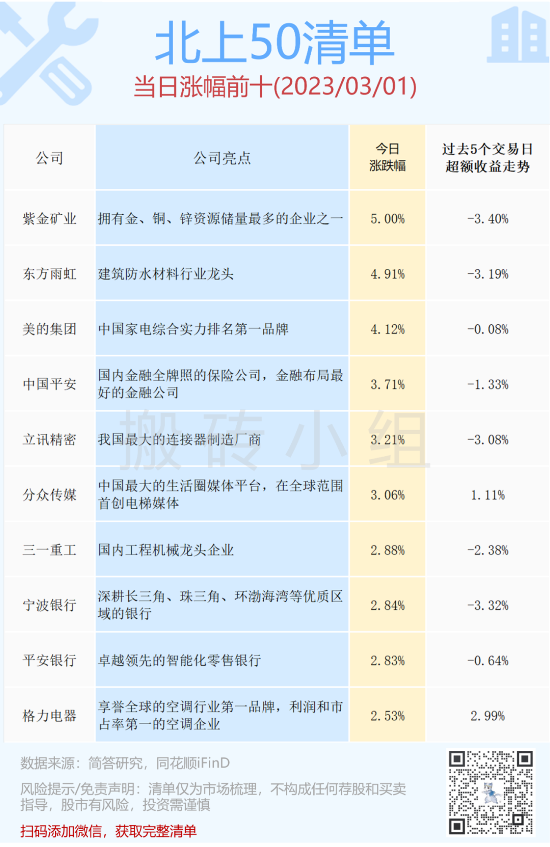 北上50榜单上榜的大多都是强宏观品种,机构和外资在定价中国经济的复苏,上面聊过了不多说。