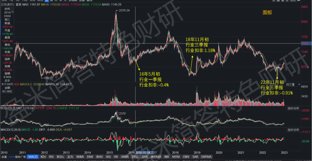 面板行业过去2次的股价底部,都有行业层面整体扣非净利率下降至0附近的特征,在去年11月披露的三季报看,行业的扣非净利率转负了,信号再次出现。
