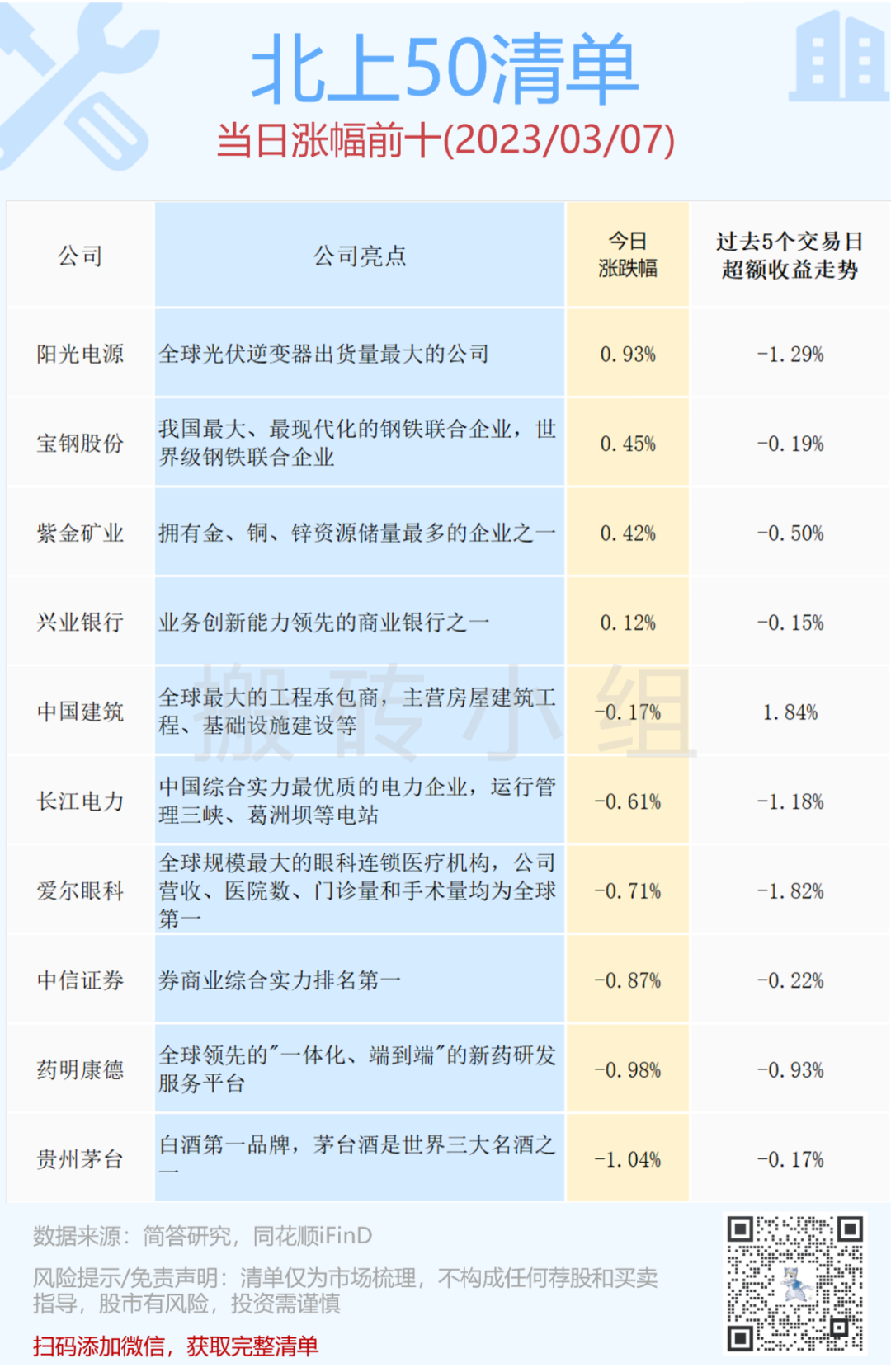 北上50榜单很是惨烈,只有4只红的,普遍亏钱。