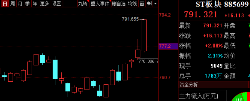 昨天市场又是颇为无聊的一天,成交额十分低迷,盘面也是让人昏昏欲睡,除了受到消息提振的科技还有些关注度外,其余方向大多是在摸鱼。每当市场陷入这种混沌无序状态时,妖气就会浓郁起来,典型代表就是ST板块,市场越弱它越嗨,看看最近都涨成啥样了。。
