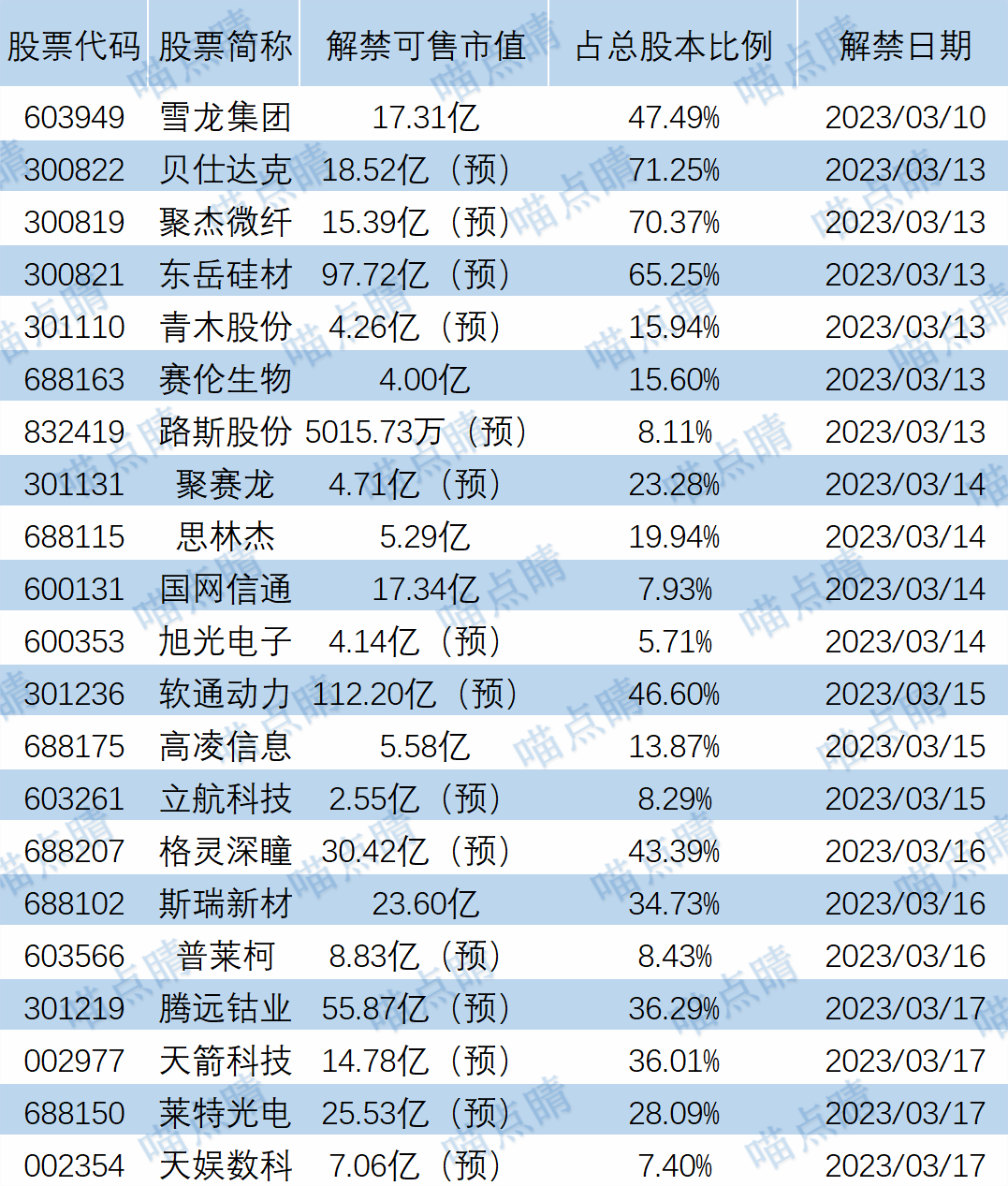 【限售解禁】