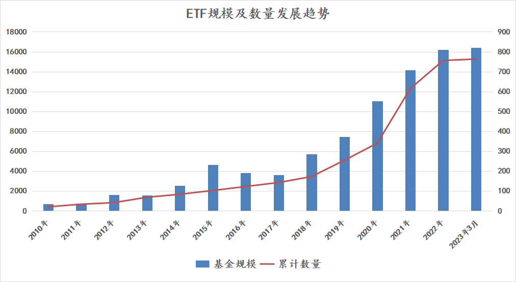 最近看到个消息,关注度不太高但其实还蛮重要的,就是国内的ETF资产净值创造了历史新高,总规模超过了1.63万亿。从下图可以看出,自17年以来,不管行情如何,ETF规模都呈现稳步增长的状态,趋势已经很明显了。