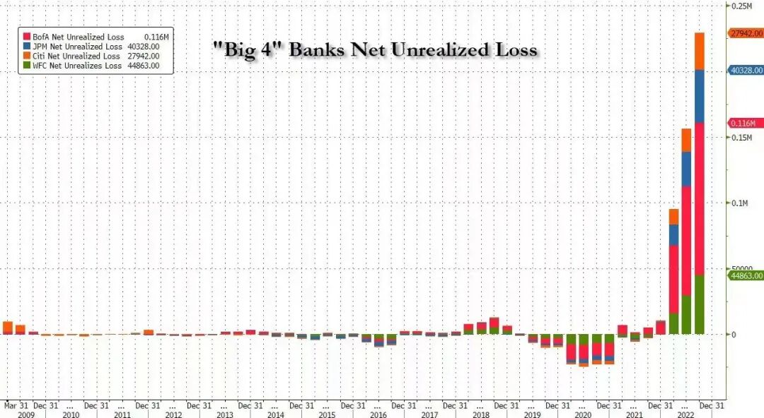 从数据来看,美国四大银行的未实现亏损也有一定数量级,是否会有风险就是看“持有至到期投资/总负债”的比例。四大行的比例分别是22%、12%、12%、17%,而SVB的比例高达47%,总体看风险是可控的。