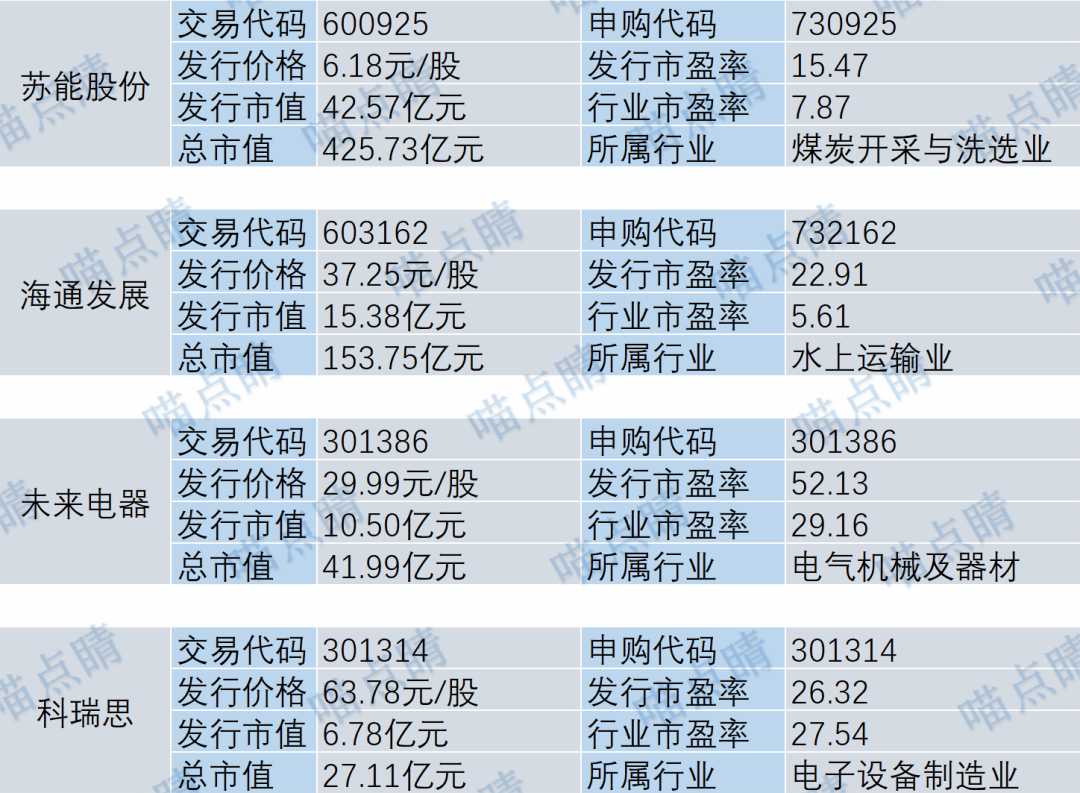 未来电器主营业务为低压断路器附件的研产销;科瑞思主营业务为客户提供小型磁环线圈绕线服务。整体来看,今天这四个各项指标对应破发率尚可接受。