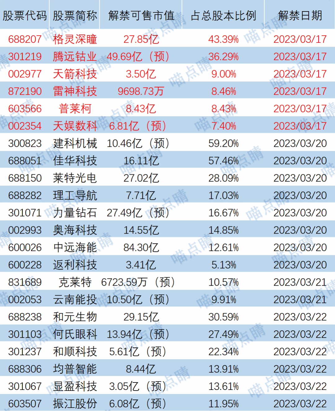 今天格灵深瞳、腾远钴业等有大额可售解禁。