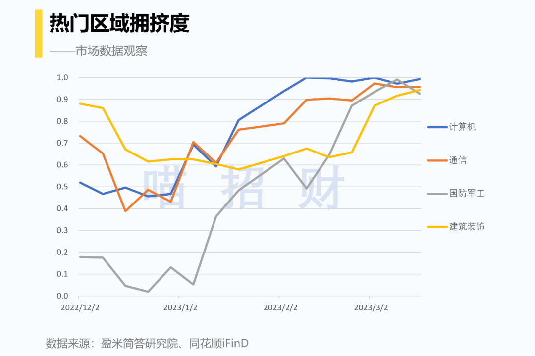 行业层面,热门板块还是这4个方向,现在拥挤度很高,从盘面上看波动率也已经放大了,这些方向盯着图,遵守交易纪律就好。