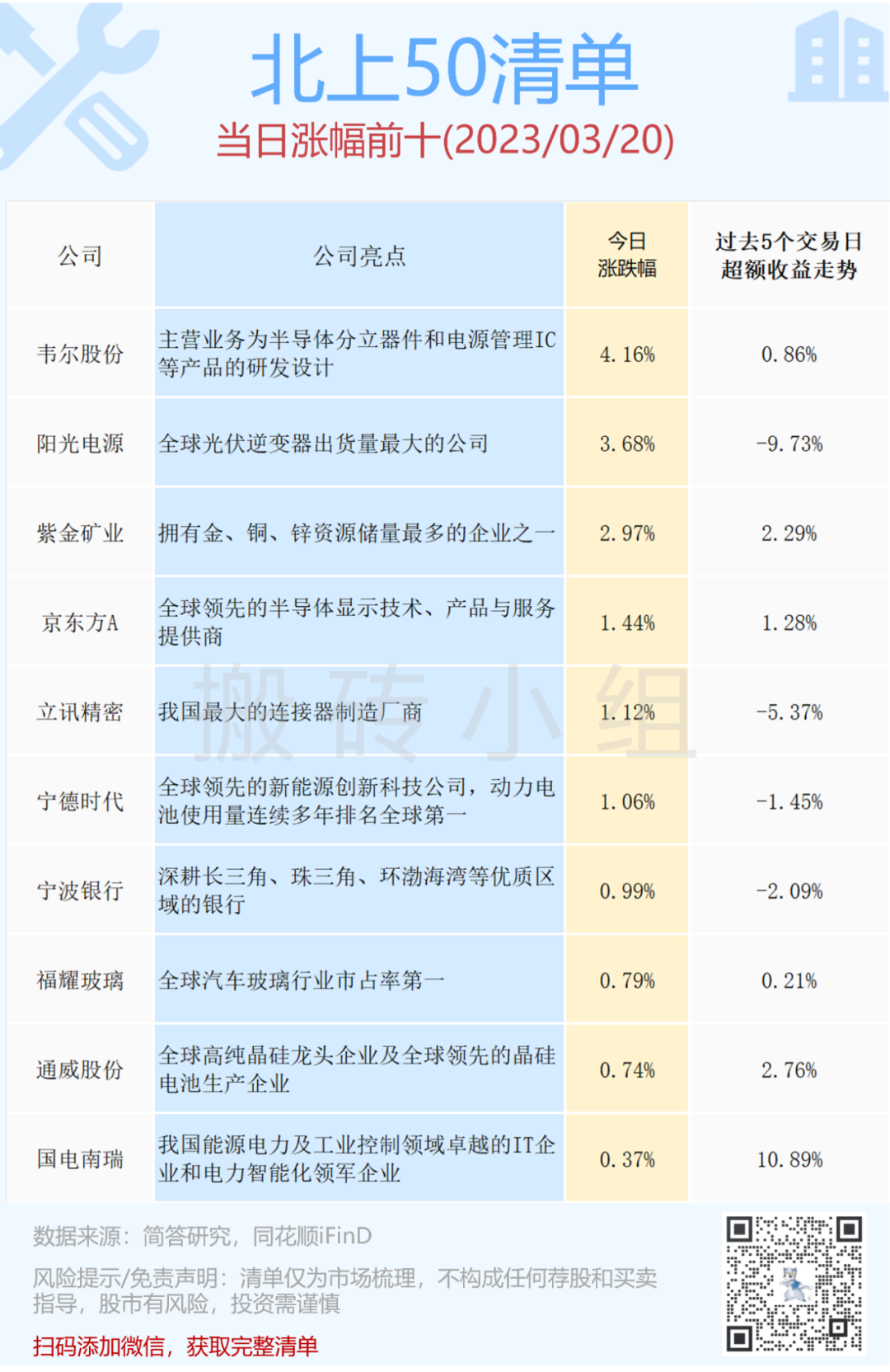 北上50榜单表现一般,上榜的有不少是新能源方向,略微有止跌的感觉了。