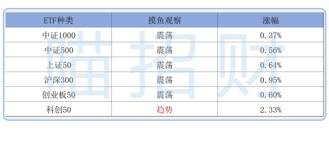最近科技方向走得很强,有一个比较重要的信号是科创50已经站上年线了,并且也是我们跟踪的6个宽基ETF里唯一有趋势的品种。