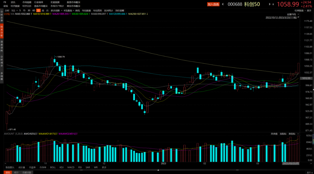 而从市场层面看,创业板启动的点就是底部盘整完突破年线,这里科创50已经突破年线,确实很像。短期这里走量价齐升,趋势没破坏之前跟着图走就好了。