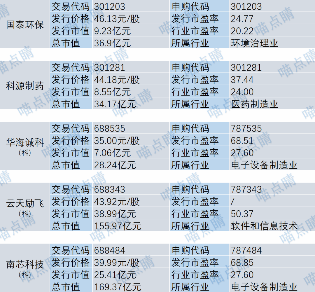 国泰环保主营业务为专业从事污泥处理、成套设备销售与水环境生态修复;科源制药主营业务为化学原料药及其制剂产品的研产销;华海诚科致力于半导体封装材料环氧塑封料的研产销。上面这三个发行价、发行市值、所属行业相关指标对应破发率较低。