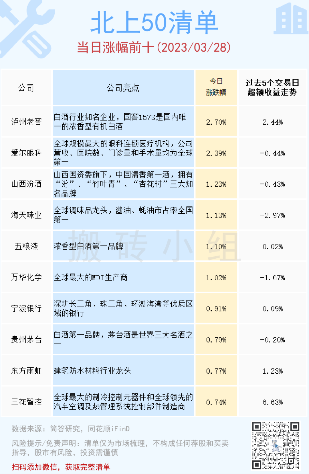 北上50榜单上榜的大多都是茅指数成分,在今天整体状况比较差的环境下走出来,说明市场开始有资金转向龙头防守了。