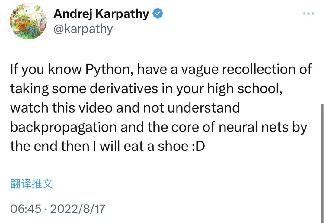 在离开特斯拉期间,这位大牛休息了几个月,在网上教大家怎么搞人工智能,还说如果学不会,他就吃鞋。。