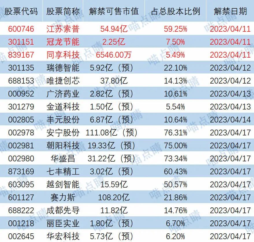 今天江苏索普、冠龙节能等有大额可售解禁。