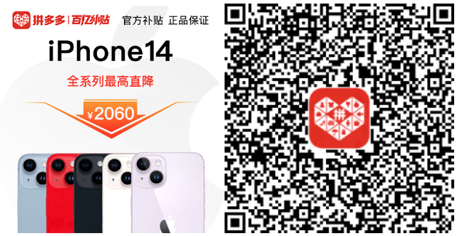 更有全新重磅活动推出——百亿补贴数码家电消费季,加码狂补10亿元!全网低价、正品发票,天天都是618!iphone14售价跌破5000,全系列最高直降2060元!!全品类爆款大降价,剁手之前先来拼多多比价!