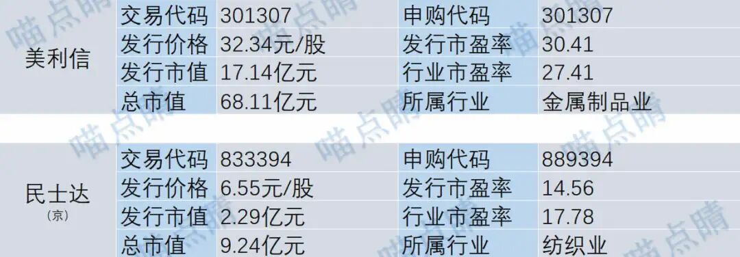 美利信主要从事通信领域和汽车领域铝合金精密压铸件的研产销。发行市值对应破发率较高,但公司涉及通信和新能源车行业,景气度较好。