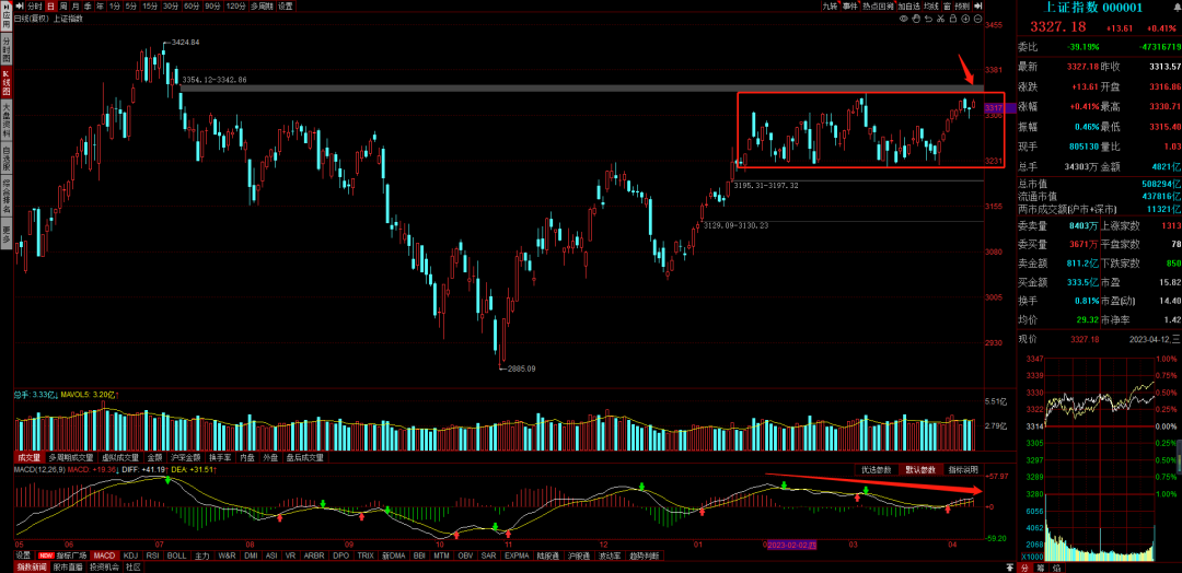 但从左侧技术上看,当前指数处于箱体上沿,上面有缺口压力,如果指数新高会有顶背离。化解顶背离需要放量上涨才能实现,观察好后续的流动性吧。