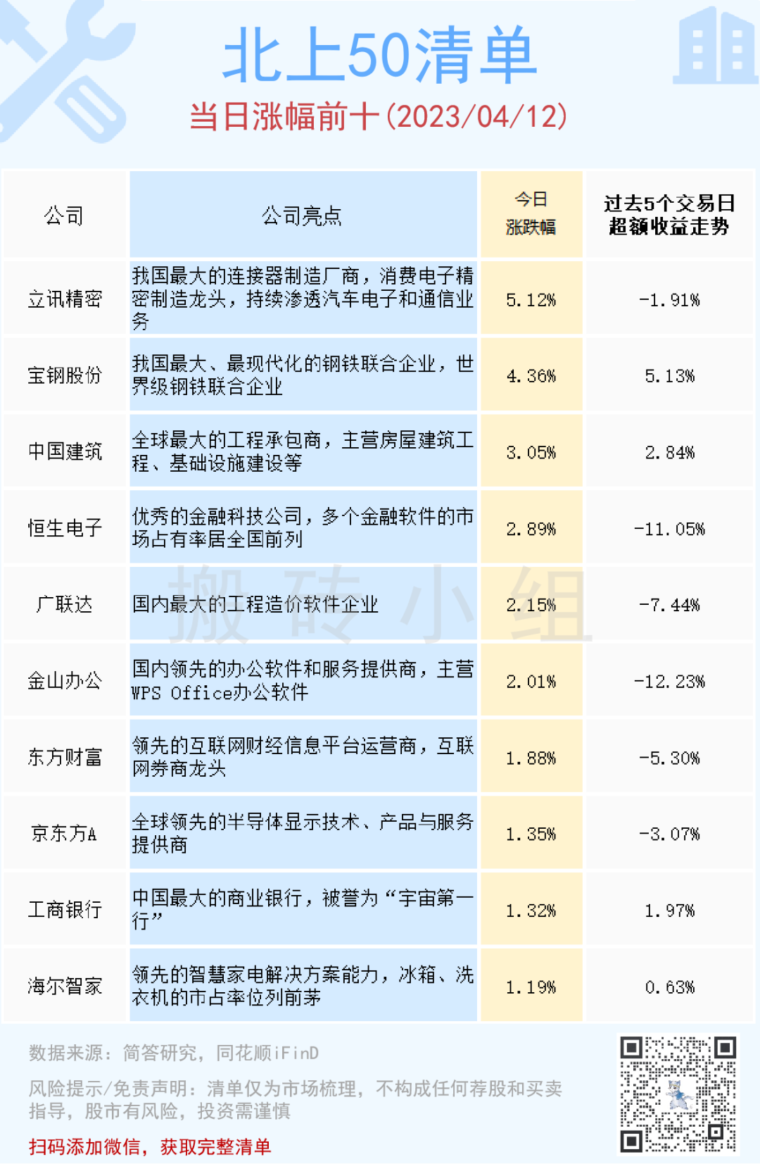 【北上50涨幅前10】